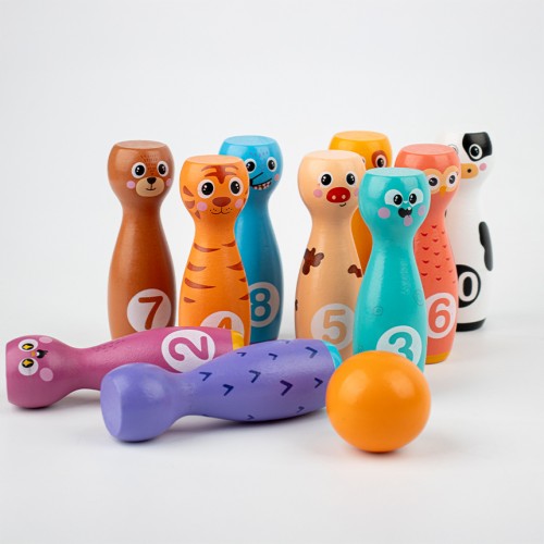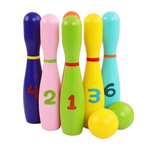나무로 제작된 컬러풀한 볼링놀이