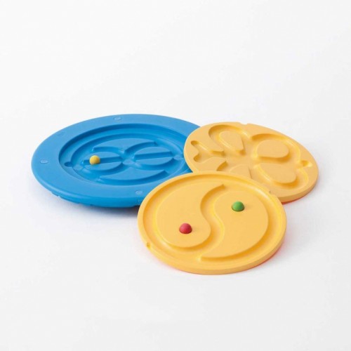 손이나 발을 이용하여 트랙을 따라 공을 굴려 균형감과 협응력을 향상
