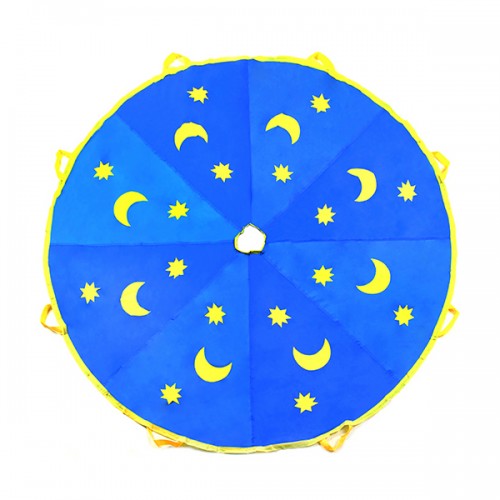 별&달 문양이 프린팅되어 있어 아이들의 흠이를 유발하고 상상력을 자극하여 다양한 협동놀이를 즐길 수 있는 낙하산