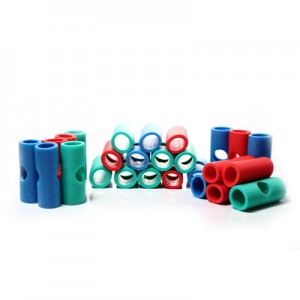 빨강, 초록, 파랑 3색으로 이루어진 플레이스틱을 연결할 수 있는 폼 재질의 커넥터